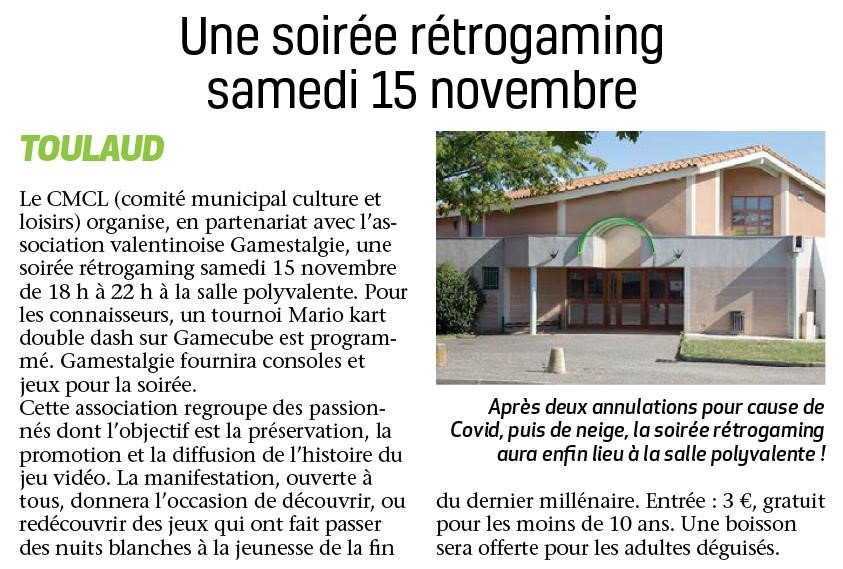 › 13/11 Une soiree retrogaming samedi 15 novembre