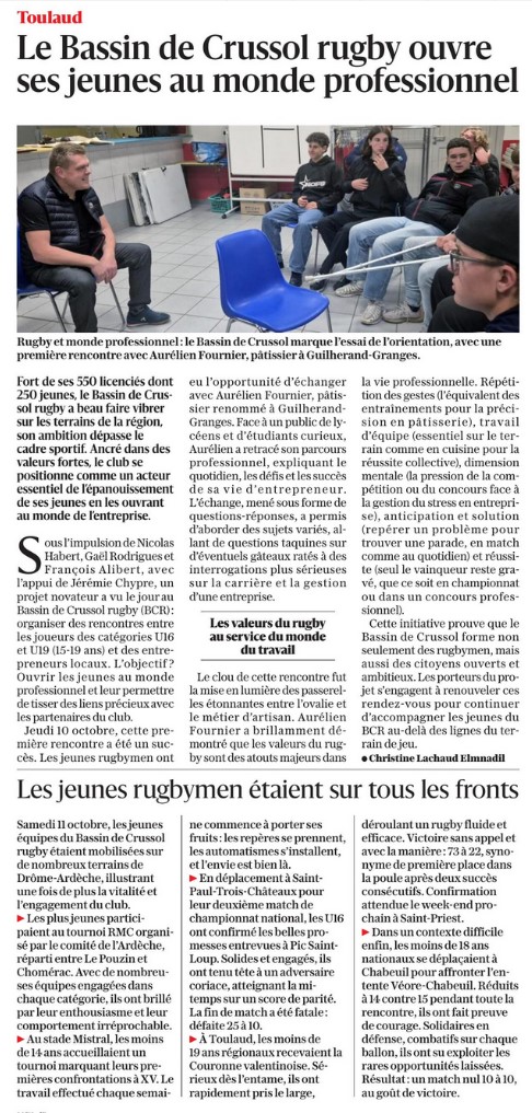 › 14/10 Le Bassin de Crussol Rugby ouvre ses jeunes au monde professionnel