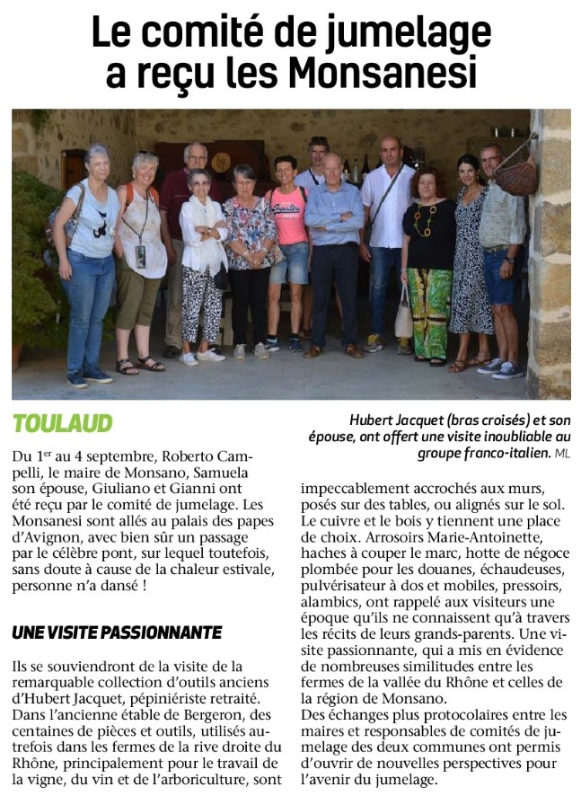 › 08/06 Une delegation toulaudaine en visite a Monsano