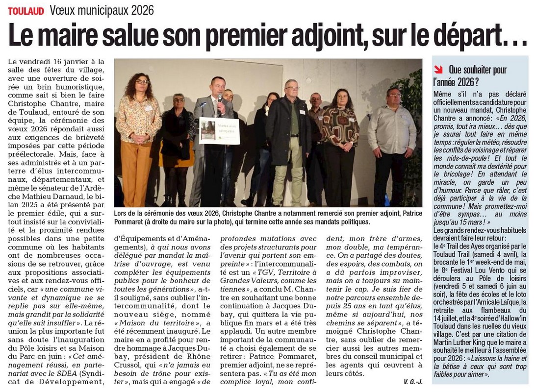 › 22/01 Le maire salue son premier adjoint sur le depart