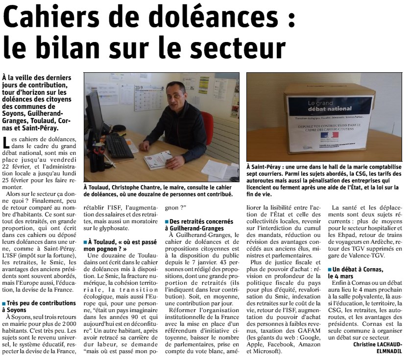 › 21/02 : Cahier de doléances bilan sur le secteur