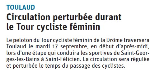 › 15/09 : Circulation perturbee durant le tour cycliste feminin