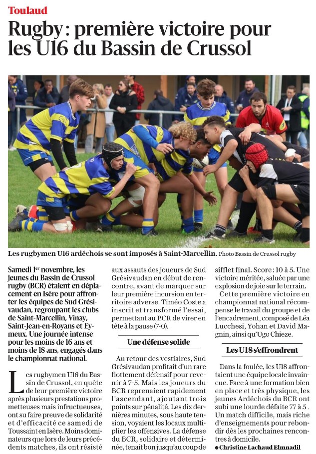› 29/10 Rugby M18 du Bassin de Crussol s imposent avec panache