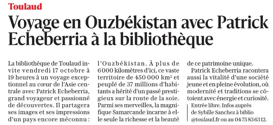 › 13/10 Voyage en Ouzbekistan avec Patrick ECHEBERRIA a la bibliotheque