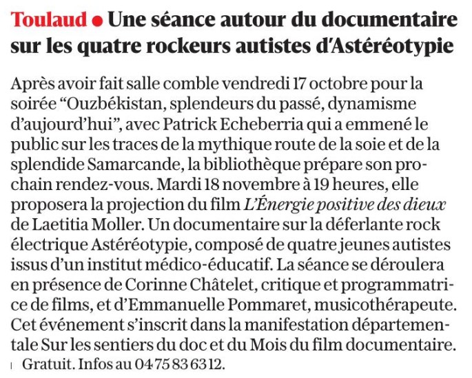 › 25/10 Une seance autour du documentaire sur les quatre rockeurs autistes d Astereotypie