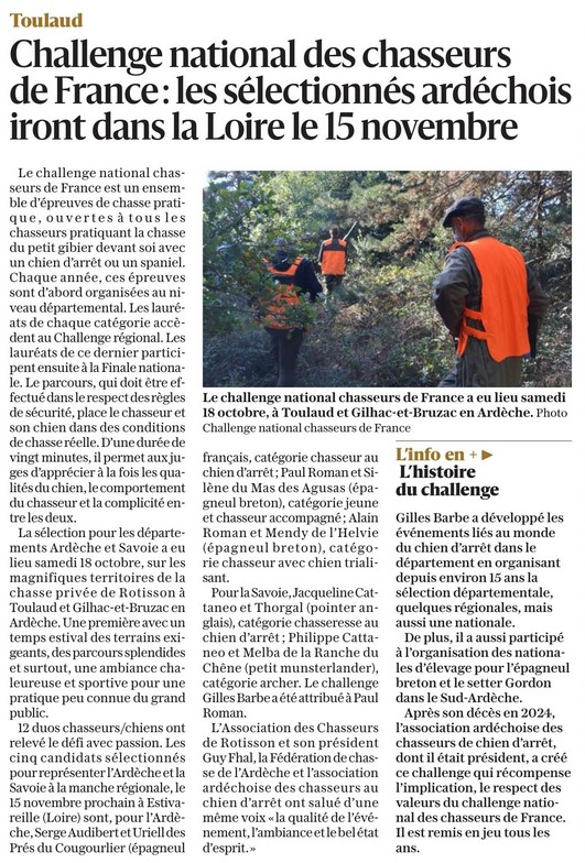 › 25/10 Challenge national des chasseurs de France les selectionnes ardechois iront dans la Loire le 15 novembre