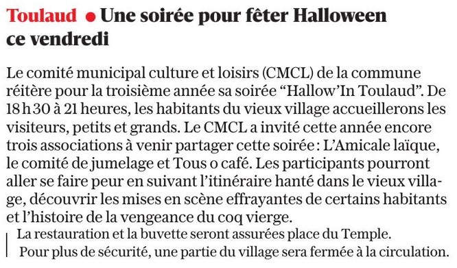 › 29/10 Une soiree pour feter halloween ce vendredi